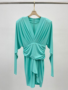 欧洲站21春夏新款女装 优雅气质 性感女人味 褶皱...