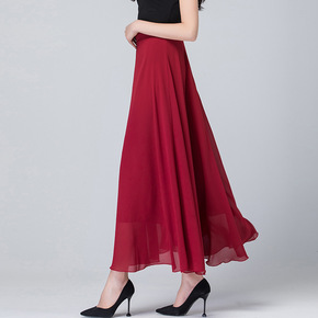 2021纯色雪纺半身裙夏季新款高腰A字大摆长裙大码...