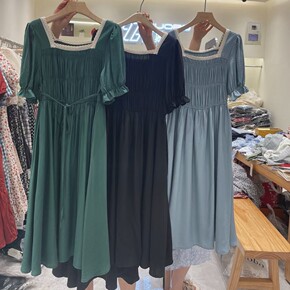 赫本风法式气质连衣裙女2021夏季新款方领花边泡泡...