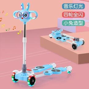 颜值版滑板车4-7-9-12岁闪光折叠儿童竞速滑滑...