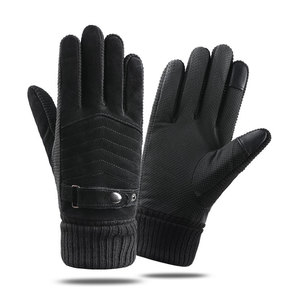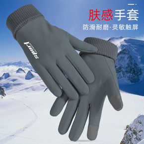 男冬季滑雪手套户外骑行自行车皮手套保暖触屏加绒加厚...