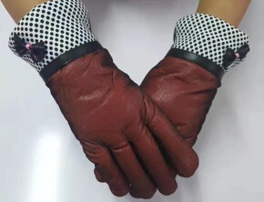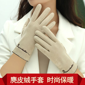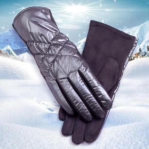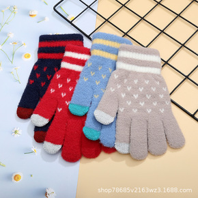 冬季新款水貂毛保暖手套 女士可爱提花触屏手套 户外...