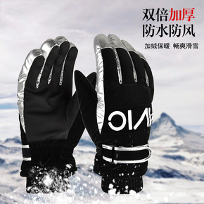 冬季滑雪保暖防风手套加绒防滑防水手套全触屏反光运动...