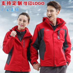 -户外冲锋衣印LOGO 男女三合一两件套秋冬款加绒...