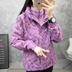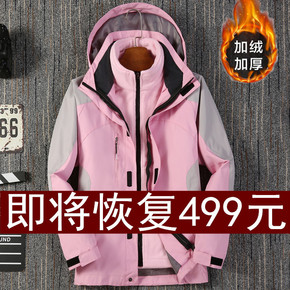 新款秋冬季潮牌冲锋衣女三合一可拆卸两件套加绒加厚男...
