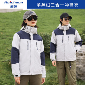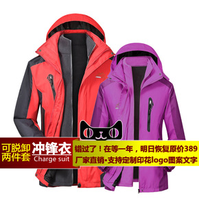 冲锋衣男印logo户外三合一可拆卸两件套女加厚防水...