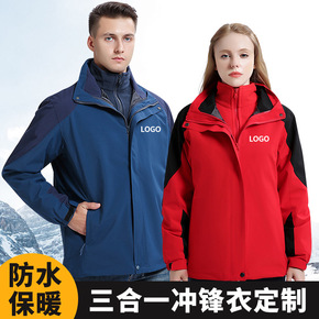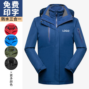 户外冲锋衣z印制男印图三合一可拆卸印制两件套加厚登...