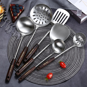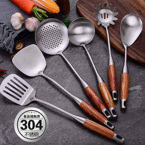 304不锈钢锅铲厨具套装花梨木柄漏勺加厚隔热炒菜铲...