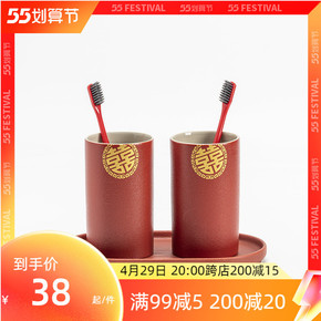 结婚漱口杯一对家用情侣杯子新婚陪嫁洗漱杯套装红色婚...
