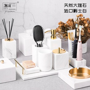 天然大理石卫生间浴室用品洗漱套装轻奢卫浴套件牙刷架...