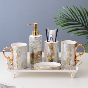 朴二三大理石轻奢浴室用品欧式卫浴刷牙杯洗漱套装北欧...
