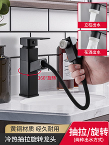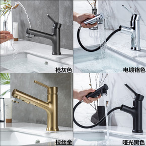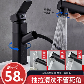 面盆水龙头抽拉式拉丝漱口多功能卫生间洗脸盆冷热全铜...