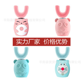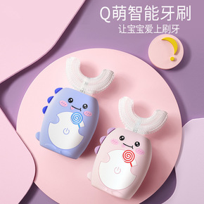 u型儿童电动牙刷硅胶软毛防水USB充电洁牙器宝宝2...