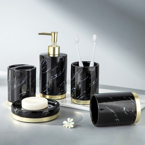 跨境黑色仿大理石纹洗漱用品套件 高档乔迁礼品套装陶...