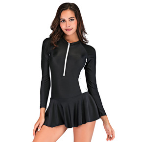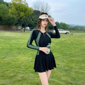 源头工厂2022长袖新款拼色潜水服连体泳衣女温泉保...