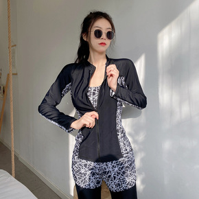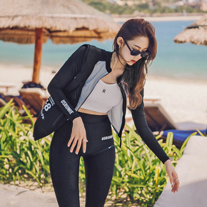 韩版套装潜水服分体聚拢防晒水母女长袖拉链泳衣2件套...