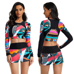 欧美性感印花bikini长袖连体泳衣性感露背潜水服...