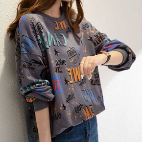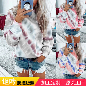 跨境时尚上衣潮2022秋季新款女装扎染印花宽松大码...
