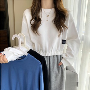 春季新款卫衣女装百搭短款圆领上衣长袖2022年时尚...