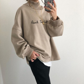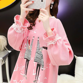 民族风女装秋冬季新款加绒加厚卫衣韩版蕾丝拼接高领打...