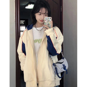 设计感小众连帽卫衣女2022年新款女春秋撞色宽松百...