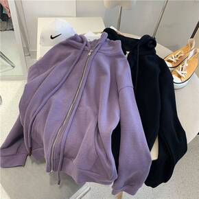 2022新款卫衣女春秋薄款韩版潮紫色拉链百搭宽松显...