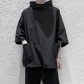 2022春季字母刺绣宽松落肩立领卫衣男士套头拉链打...