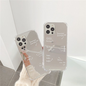 简约英文补妆镜XR苹果13Pro手机壳Xsmax适...