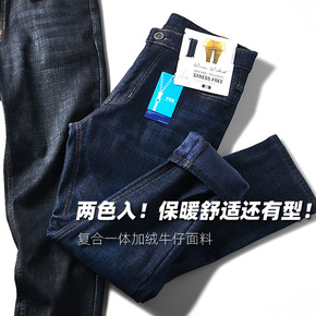 加绒牛仔裤男宽松大码男士弹力休闲工装冬季韩版潮学生...