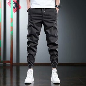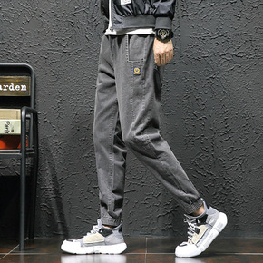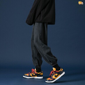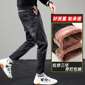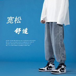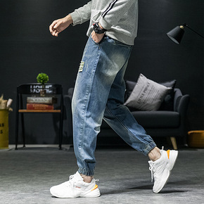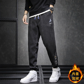 秋冬新款牛仔裤男士宽松束脚哈伦裤水洗男常规加绒舒适...
