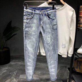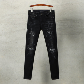 2020欧美外贸印花新款男士修身破洞小脚裤跨境欧洲...