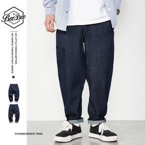 外贸跨境日系复古牛仔七分裤男潮胖大码宽松直筒哈伦裤...
