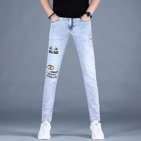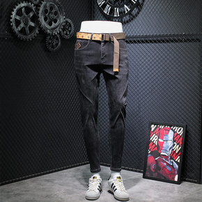 2022年春季新款牛仔裤男刺绣烫砖修身小脚时尚个性...