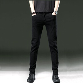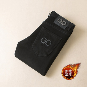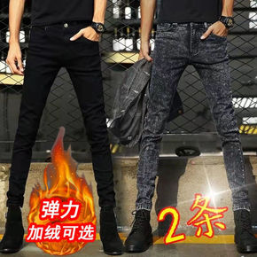 欧洲站秋冬新款男士修身牛仔裤磨毛加绒加厚休闲潮流黑...