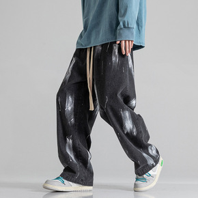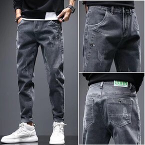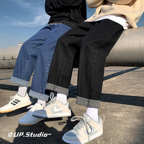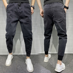 男式牛仔裤束脚裤2021秋冬新款男裤潮流弹力韩版宽...