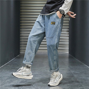 2021春季新港风大码束脚牛仔裤小脚九分休闲宽松潮...