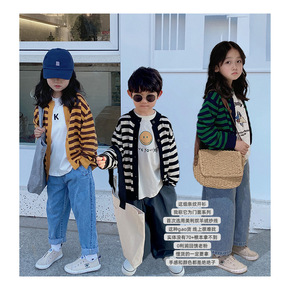 KALA22春男女童韩版条纹长袖开衫儿童休闲针织百...