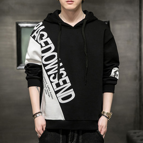 宽松套头连帽外套卫衣男秋冬潮流牌潮拼色INS初中学...