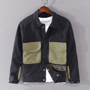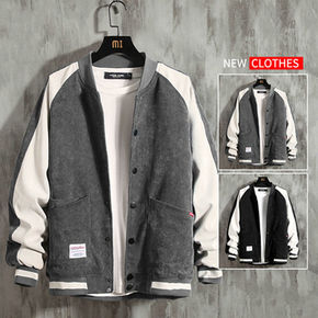 2021秋季纯棉夹克男拼接撞色刺绣外套休闲时尚潮男...
