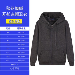 秋冬加肥大码男拉链开衫卫衣加绒加厚连帽衫胖子宽松棉...