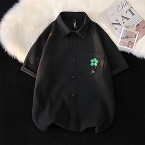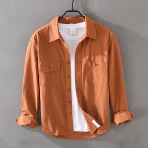 日系休闲长袖衬衫男士春秋装复古休闲寸衫青年百搭宽松...
