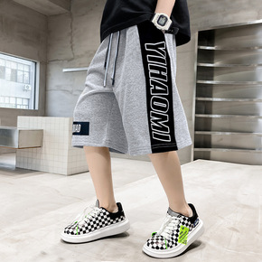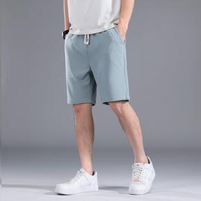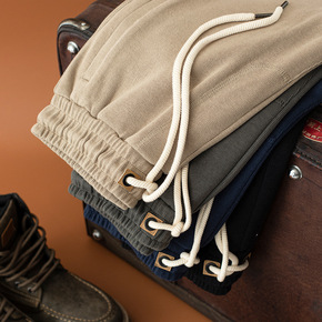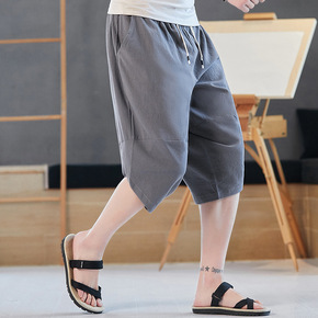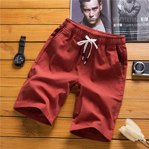 外贸男装夏季纯色松紧系绳七分裤潮青少年韩版修身男士...