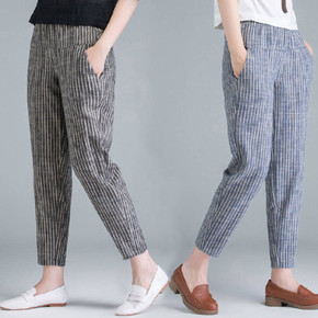 棉麻夏韩版薄款棉麻裤女宽松萝卜裤子2022新款高腰...