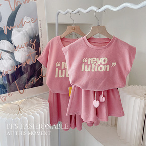 女童亲子套装2022夏装新款华夫格短裤炸街运动两件...