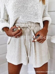 亚马逊爆款绵麻沙滩短裤2022夏开叉休闲运动裤子居...
