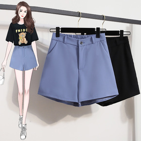 实拍西装短裤女春夏高腰宽松大码直筒中裤潮ins黑色...