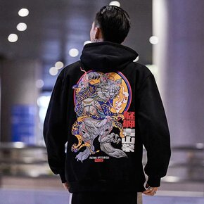 跨境秋季潮流骷髅3D数码印花男士带帽卫衣厂家直销...