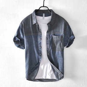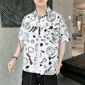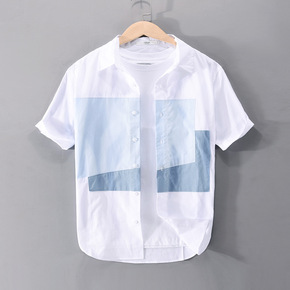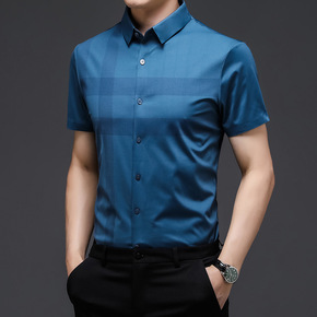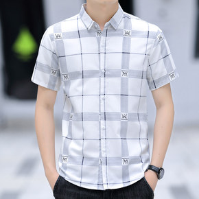 短袖男衬衫薄款休闲上衣男格子衣服修身百搭青年韩版潮...