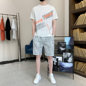2022年夏季新款潮流印花短袖套装男士户外运动休闲...