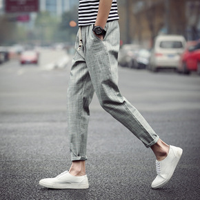 包邮休闲裤男秋季韩版潮流直筒九分裤春装男士港风港风...